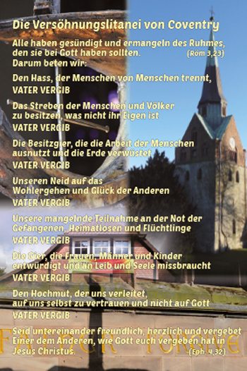 Die Versöhnungslitanei in der Sievershäuser Version wird an jedem 2. Freitag im Rahmen einer Andacht in der St. Martinskirche gebetet: